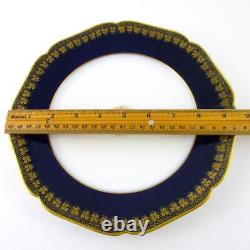 This is a wonderful set of 6 - 9.5 DINNER PLATES with a COBALT Blue border encrusted with GOLD Leaves & Spatter - made by HAVILAND & Co. The shape is a slightly scalloped octagon known as H&Co Blank #14 - Pattern name/number - Unknown.